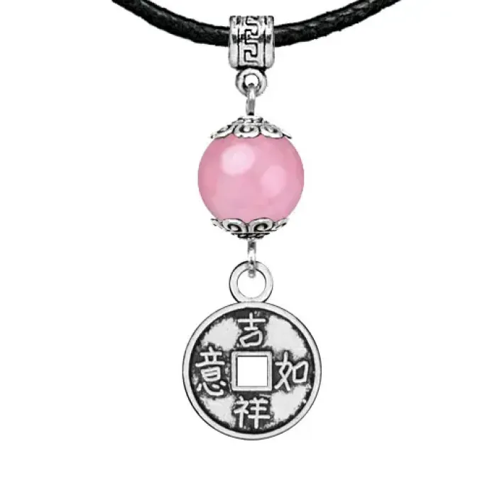 Амулет Монетка (богатство), розовый кварц MKA28-13