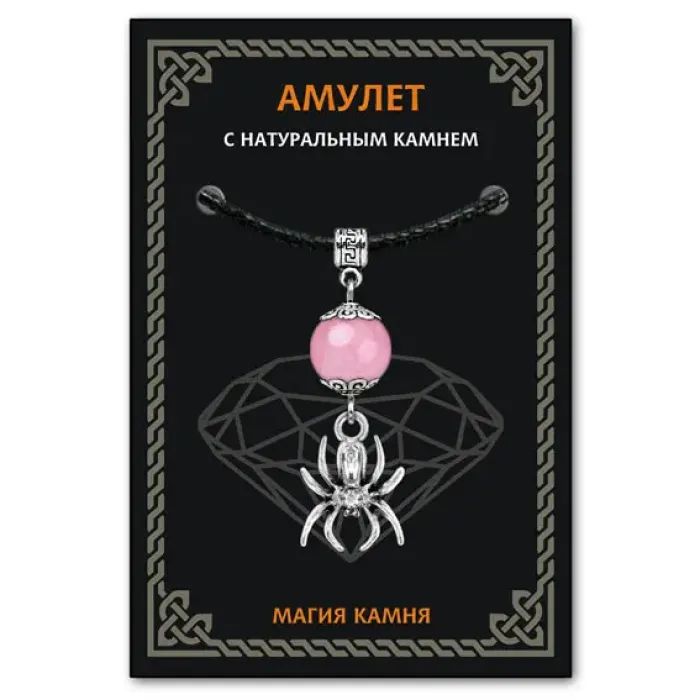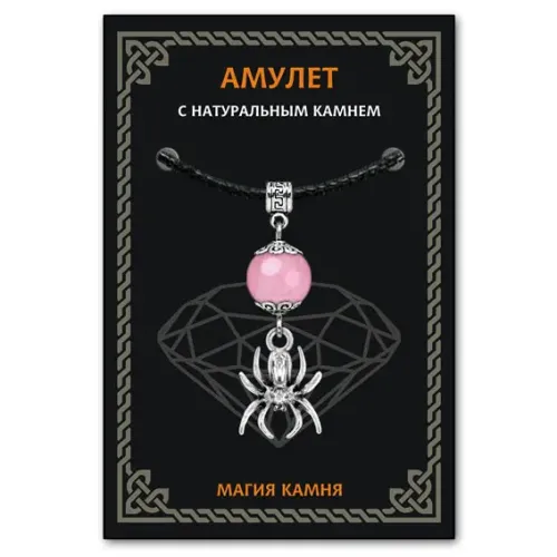 Амулет Паук из коллекции Магия камня 2 — это не просто украшение, а символ защиты и благополучия. Он изготовлен из розового кварца, который в народе ценится за свои свойства привлекать любовь и гармонию в жизнь. Этот камень традиционно ассоциируется с семейным счастьем и оптимизмом.