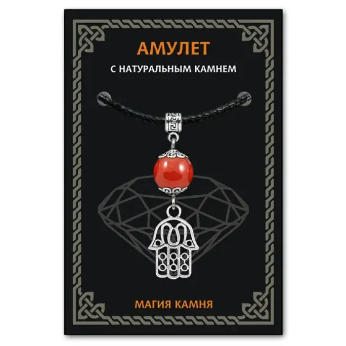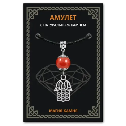 Амулет Хамса, выполненный из сердолика, является символом защиты и благополучия. Этот камень традиционно ценится за свою способность приносить храбрость и спокойствие, а также способствовать раскрытию таланта и обретению призвания.