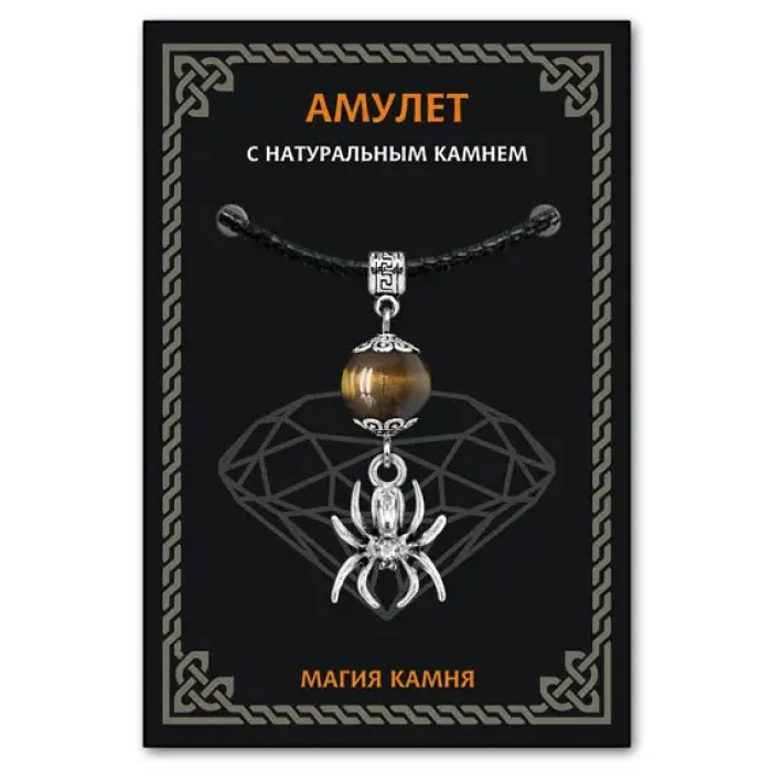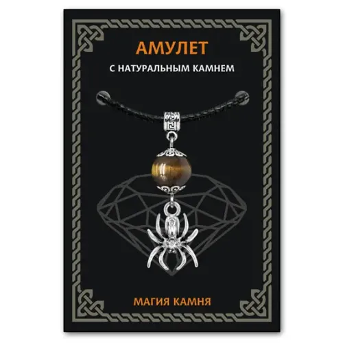 Амулет Паук — это уникальный аксессуар, который символизирует защиту, трудолюбие и достаток. Изготовленный из тигрового глаза, этот амулет традиционно ценится за свои свойства. Тигровый глаз ассоциируется с интуицией и смелостью, помогает в вопросах прибыли и возврата долгов. Он также служит защитой от негативных энергий: вампиризма, разорения и стресса.