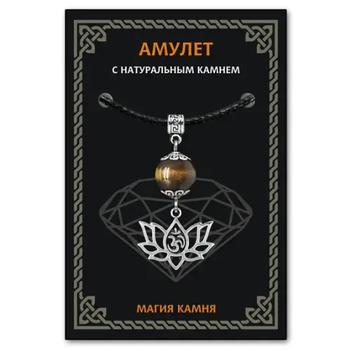 Амулет Ом и лотос — это уникальный талисман, символизирующий защиту, гармонию и развитие. Изготовленный из тигрового глаза, этот амулет ценится за свою способность усиливать интуицию и смелость. Он традиционно используется для привлечения прибыли и возврата долгов, а также помогает в борьбе с энергетическим вампиризмом и стрессом.