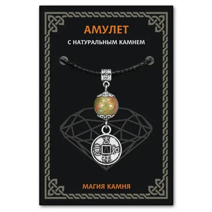 Амулет Монетка (Богатство) из коллекции Магия камня 2 — это уникальный аксессуар, который сочетает в себе красоту унакита и его символическое значение. Унакит традиционно используется для защиты, развития и гармонии, а также способствует любви и обучению. Этот амулет помогает справляться с проблемами и неприятностями, укрепляя сердечную чакру.