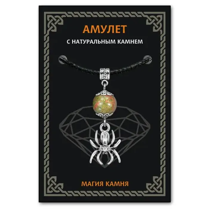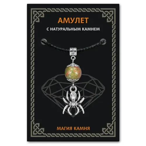 Амулет Паук из коллекции Магия камня 2 — это не просто украшение, а мощный символ защиты и трудолюбия. Унакит, используемый в данном амулете, традиционно ценится за свои свойства гармонизировать эмоциональное состояние и способствовать развитию любви и знаний. Он помогает решать проблемы и защищает от неприятностей. Каждый амулет упакован в прозрачный полипропиленовый пакет с европодвесом для удобства хранения. В комплект входит чёрный ХБ шнурок для ношения на шее. На обратной стороне вкладыша указано наименование камня вместе с кратким описанием его значений.