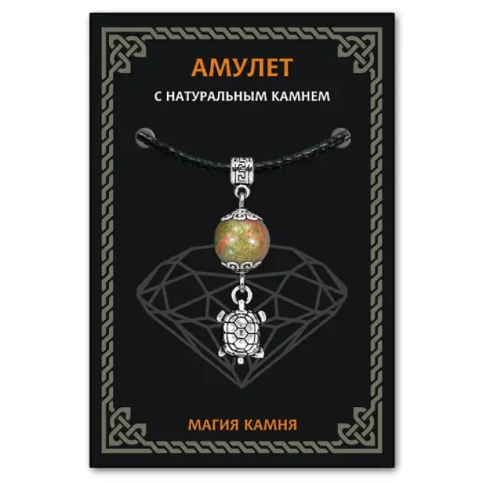 Амулет Черепаха из коллекции Магия камня 2 — это символ здоровья и долголетия, выполненный из унакита. Этот камень известен своей способностью приносить защиту, гармонию и любовь, а также способствует развитию знаний и решению проблем. Амулет помогает создать положительную энергетику вокруг владельца, защищая от неприятностей и болезней.