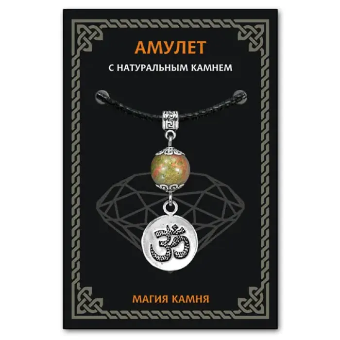 Амулет Ом — это уникальный талисман, который символизирует защиту и духовное развитие. Изготовленный из унакита, он традиционно ценится за свои свойства гармонизации, любви и поддержки сердечной чакры. Этот амулет помогает в обучении, решении проблем и защите от негативных влияний.