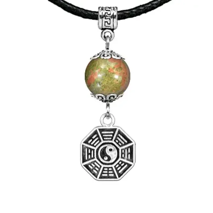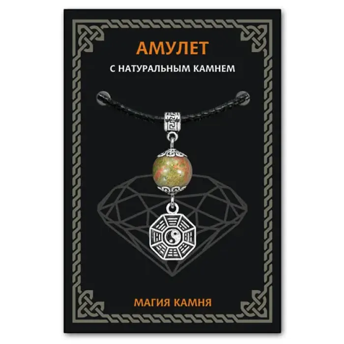 Амулет Багуа из унакита — это не только стильный аксессуар, но и мощный защитный талисман, который помогает справляться с негативной энергией. Унакит традиционно ценится за свои свойства защиты, гармонии и любви, а также способствует развитию знаний и решению проблем. Этот амулет из коллекции Магия камня 2 станет надежным спутником в повседневной жизни.