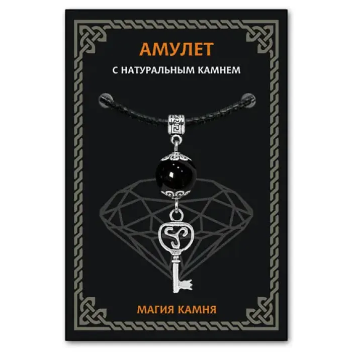 Амулет Ключ, выполненный из чёрного агата, символизирует финансовый успех и гармонию в личной жизни. Этот камень традиционно ценится за свою энергетическую защиту и умиротворение, помогая справляться с негативом, завистью и стрессами. Амулет принадлежит к коллекции Магия камня 2 и поставляется с вкладышем, на котором указаны значения всех камней и подвесок-талисманов. Упакован в прозрачный полипропиленовый пакет с европодвесом, комплект включает чёрный ХБ шнурок. Дизайн амулета защищён авторскими правами.