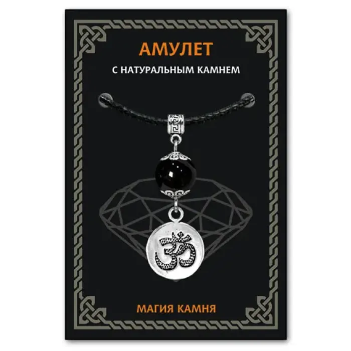 Амулет Ом (защита и духовное развитие), черный агат MKA33-18