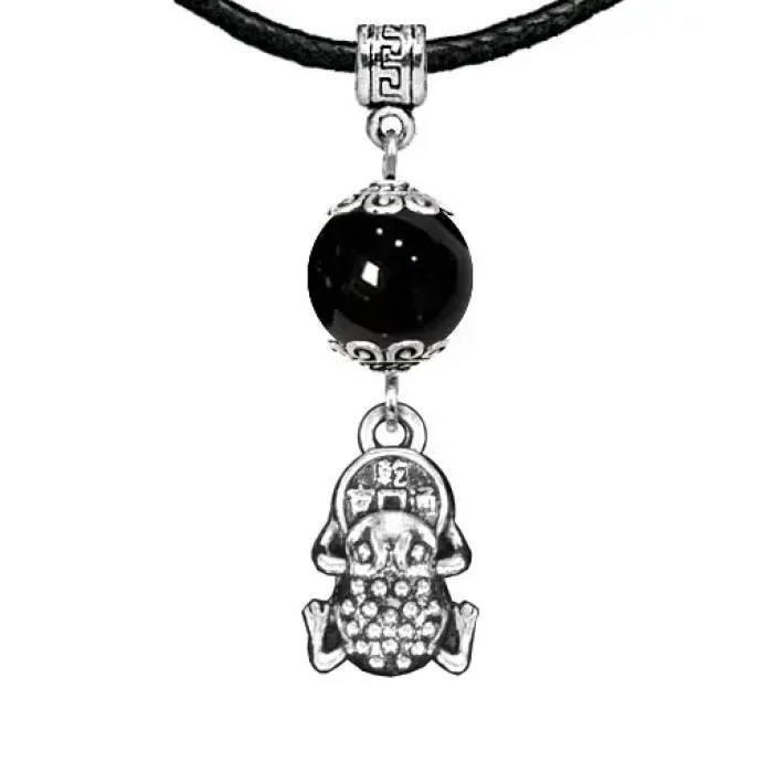 Амулет Лягушка с монетой (богатство), черный агат MKA33-23