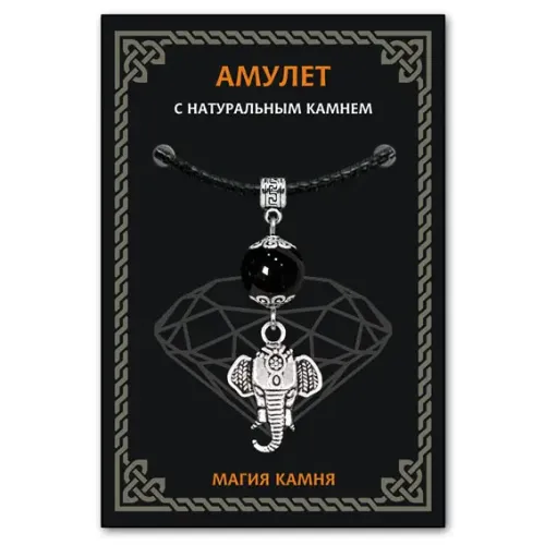 Амулет Слон (мудрость, сила, долголетие), черный агат MKA33-26