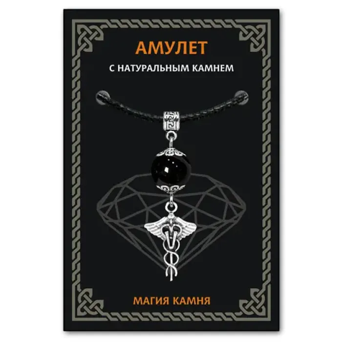Амулет Кадуцей (здоровье, бизнес, гармония), черный агат MKA33-33