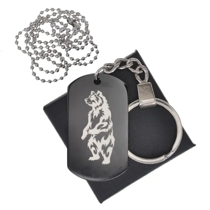 Именной жетон из нержавеющей стали с гравировкой изображения медведя.