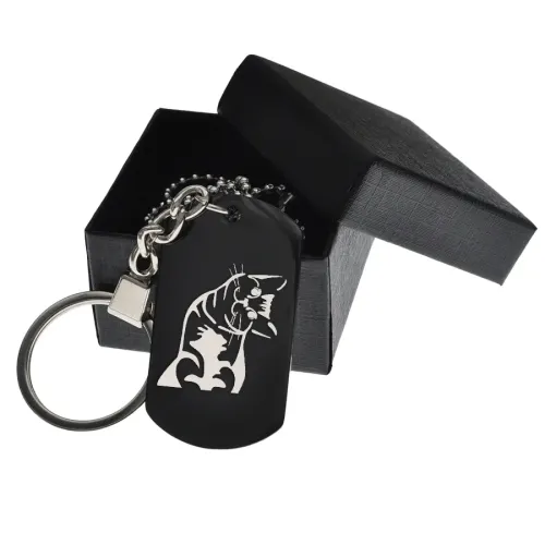 Размеры и комплектация: Размер 49х28 мм. В комплекте кольцо для ключей и регулируемая шариковая цепочка. Упаковка — подарочная коробка.