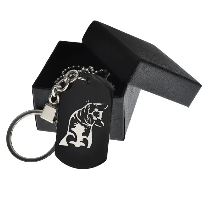 Сувенирный жетон из нержавеющей стали с гравировкой изображения кошки.