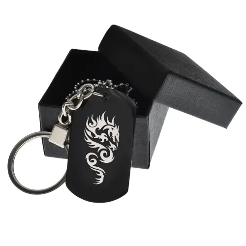 Именной жетон из нержавеющей стали с чернением и гравировкой дракона.