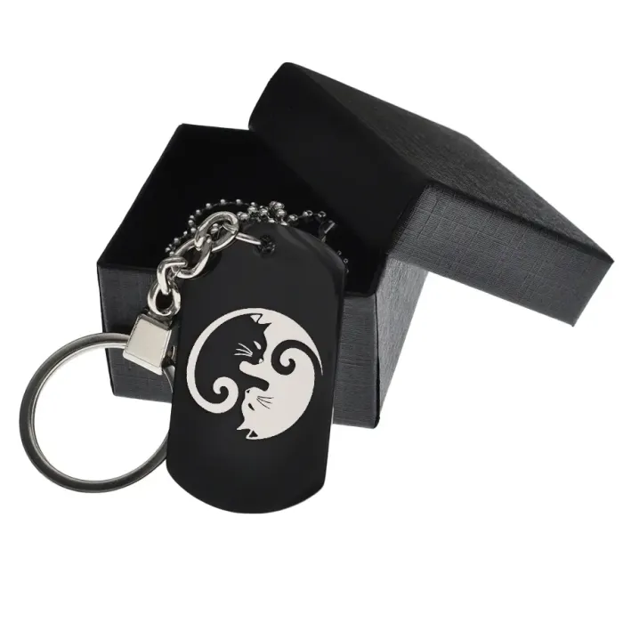 Именной жетон из нержавеющей стали с гравировкой изображения котов в стиле Инь-Ян.
