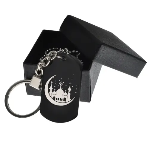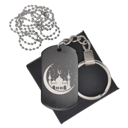 Сувенирный жетон из нержавеющей стали с чернением и гравировкой мечети с полумесяцем.