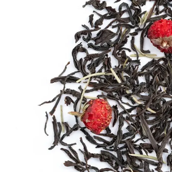 Состав: цейлонский чёрный чай, ягоды клубники, розмарин