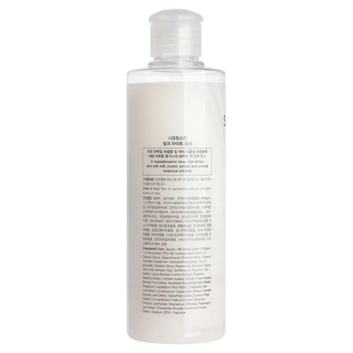 Тонер для лица с молочными протеинами NEW Secret Skin Milk Light Toner объемом 250 мл предназначен для ухода за сухой, тусклой и пигментированной кожей. Основным активным компонентом является экстракт молочных протеинов, который в сочетании с галактомисисом оказывает мощное регенерирующее воздействие на кожу. Этот тонер глубоко увлажняет и смягчает кожу, выравнивает цвет лица и осветляет его, препятствуя образованию пигментных пятен.