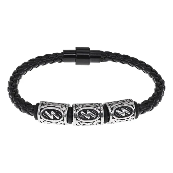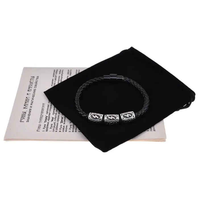 Браслет с рунической формулой Сила — это уникальное украшение, выполненное из натуральной кожи и высококачественной нержавеющей стали. Этот аксессуар не только привлекает внимание своим стильным дизайном, но и несёт в себе глубокий символический смысл.