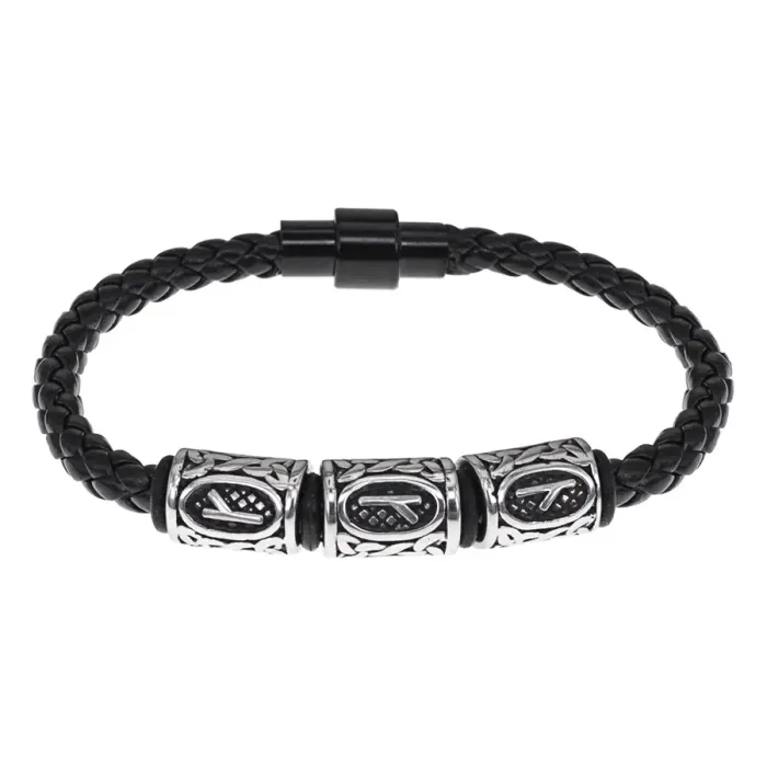 - Размеры рунических бусин составляют 13х10 мм, а толщина браслета — 5 мм, что делает его заметным элементом стиля.