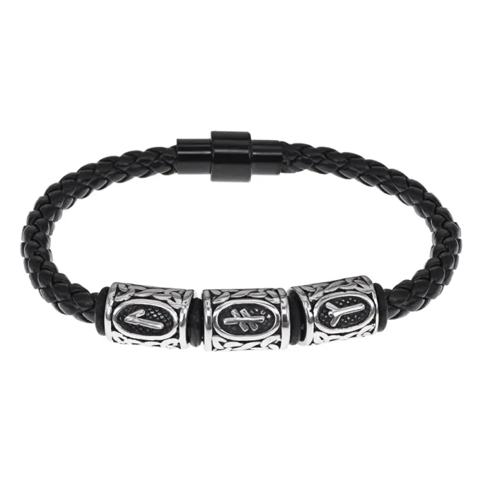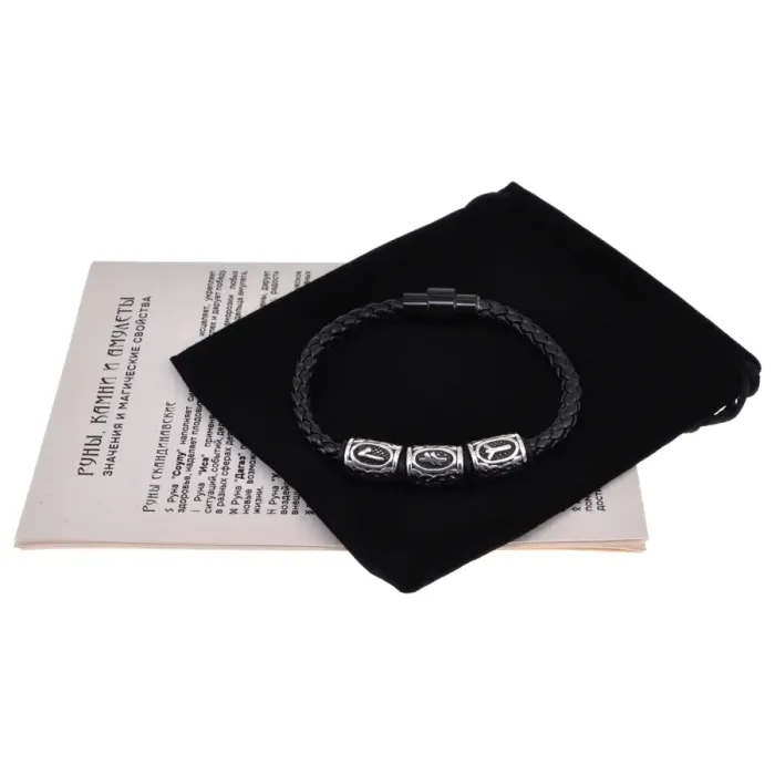 - Размеры рунических бусин составляют 13х10 мм, а толщина браслета — 5 мм, что придает ему выразительный вид.