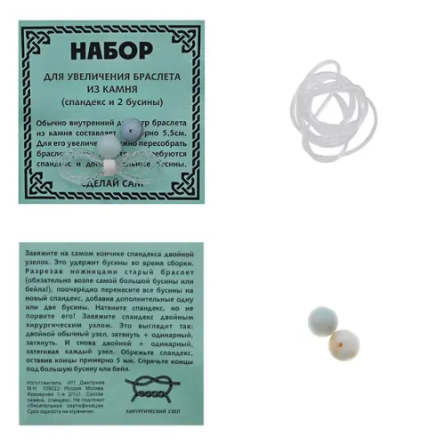 Набор для увеличения размера браслета из камня. В комплект входят две бусины из амазонита и спандекс.