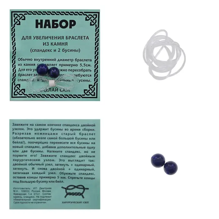 Набор для увеличения размера браслета из камня. В комплект входят две бусины из лазурита и спандекс.