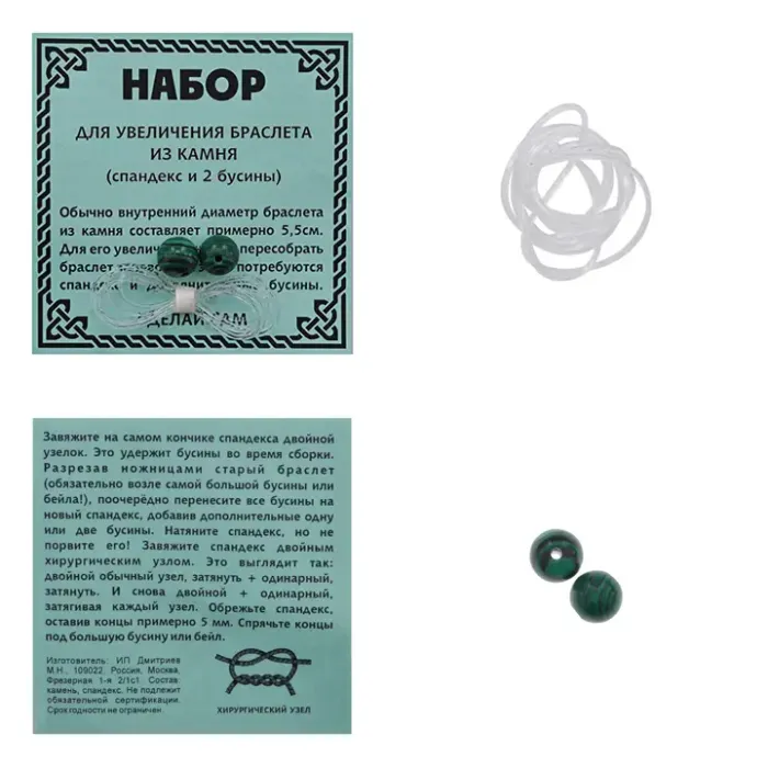 Набор для увеличения размера браслета из камня. В комплект входят две бусины и спандекс.