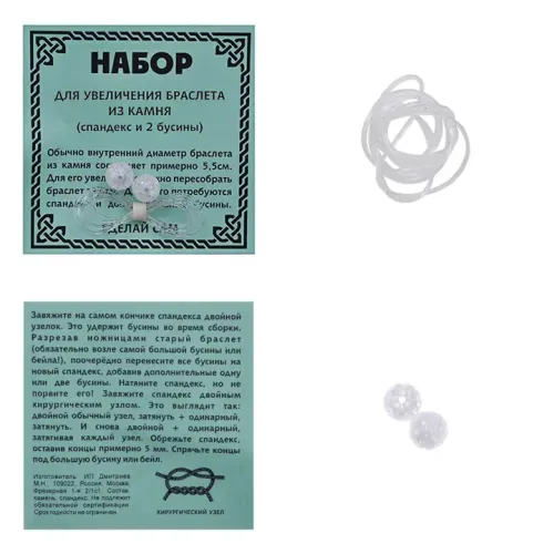 Набор для увеличения размера браслета из камня. Включает две бусины из сахарного кварца и резинку.