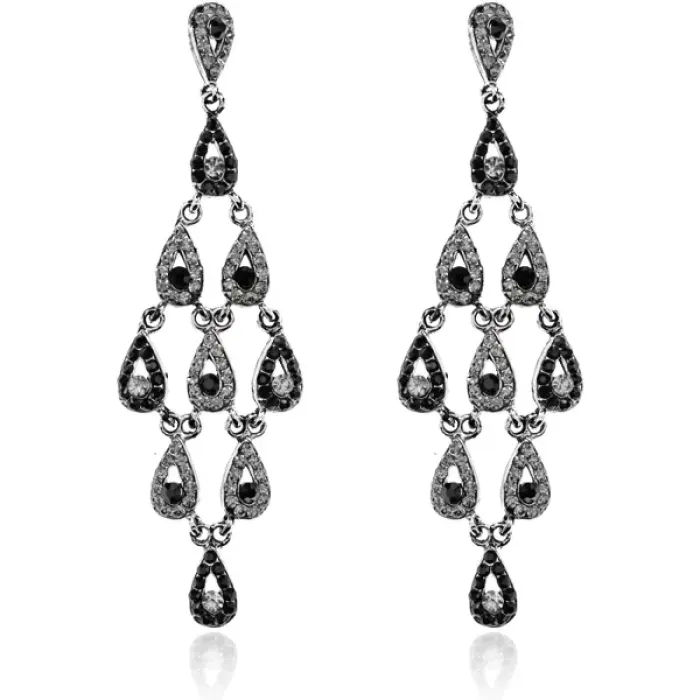 Серьги вечерние, черного цвета, с декором из страз. Замок типа пусет.