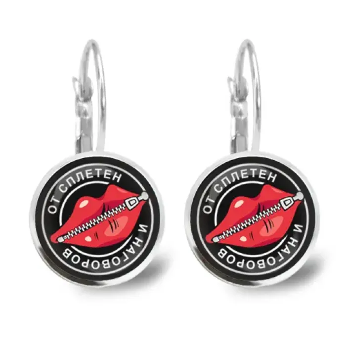 Серьги из бижутерного сплава с покрытием под серебро. Украшены изображениями под выпуклыми стеклянными линзами.
