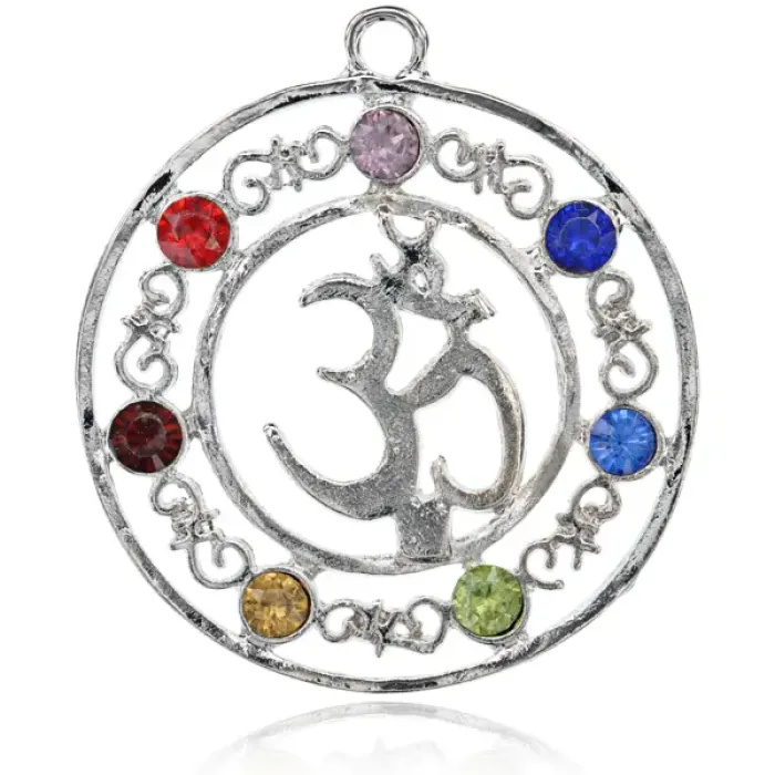 Кулон-амулет Ом 7 чакр с цветным хрусталем 3,6см, без шнурка CHA501-13