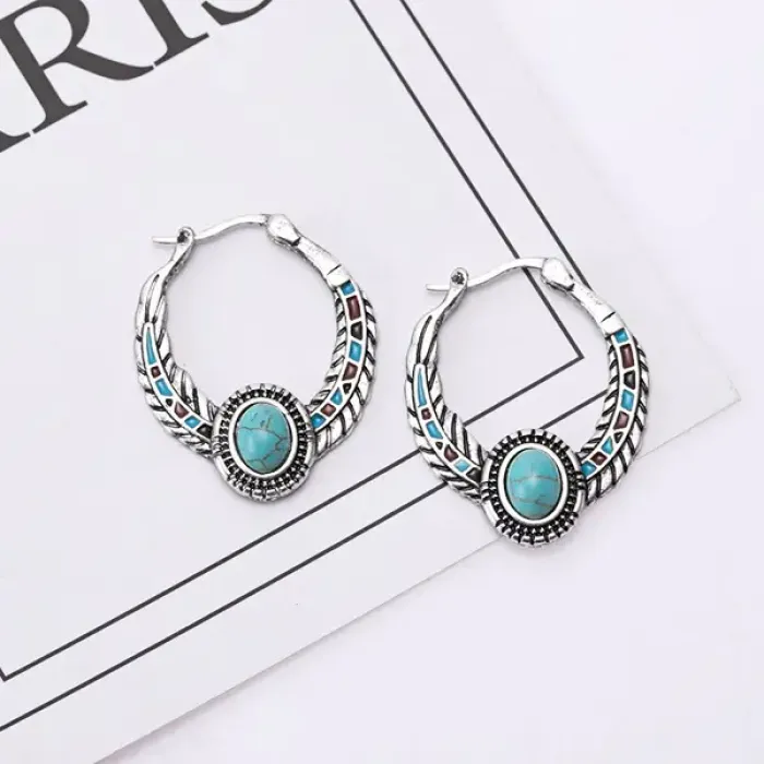 Серьги с бирюзой, 33х27мм SE163