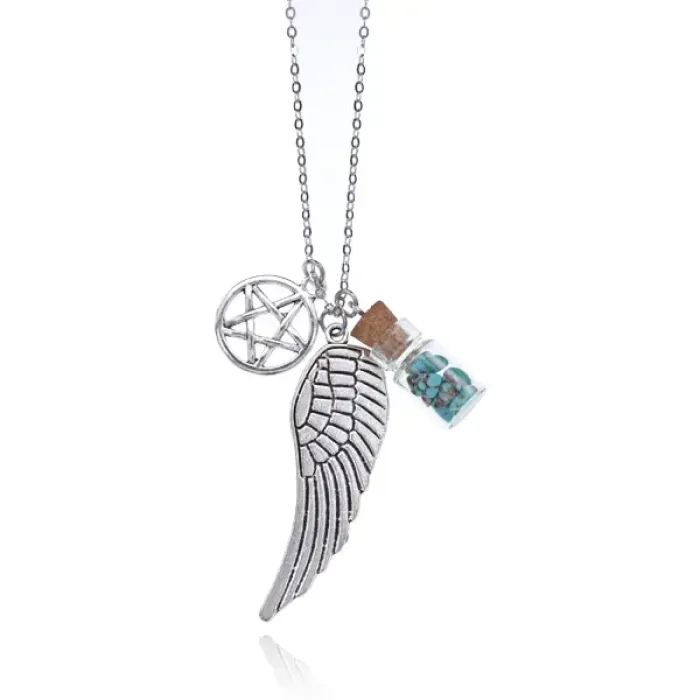 Аромафлакон с камнем бирюза, крылом, пентаграммой, цепочкой AMS001-8