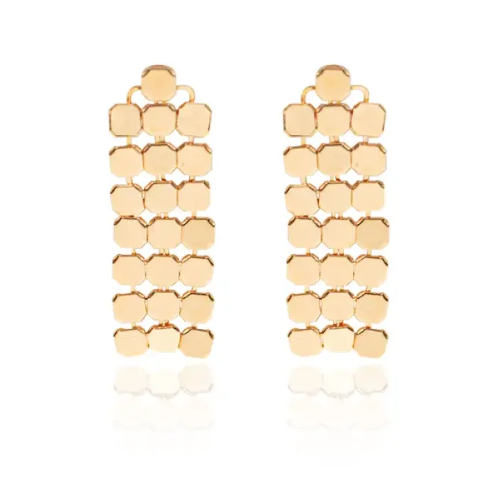 Серьги вечерние из бижутерного сплава золотого цвета. Тип замка — пусет (гвоздик).