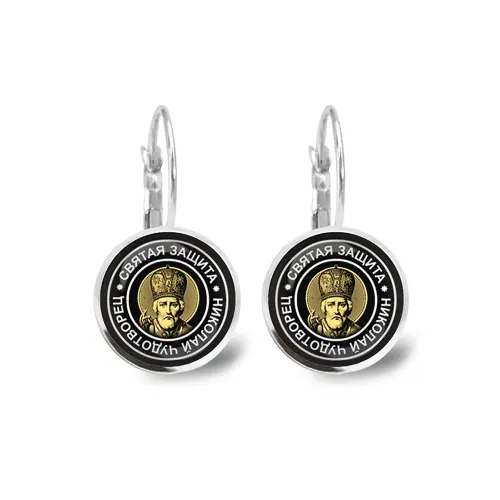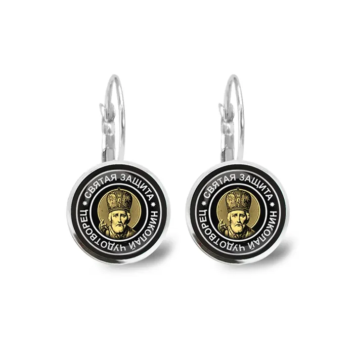 Эти изысканные серьги с изображением Николая Чудотворца станут не только стильным аксессуаром, но и символом веры и защиты. Диаметр серёг составляет 18 мм, а выпуклые стеклянные линзы придают им особую выразительность. Замок типа левербэк обеспечивает надежную фиксацию и удобство в носке. Изготовлены из бижутерного сплава с покрытием под серебро, что делает их легкими и долговечными. Упакованы в прозрачный пакет без подложки, что позволяет оценить красоту изделия сразу же.