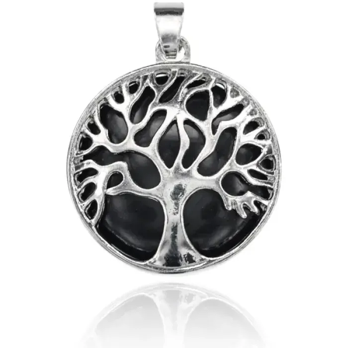 Кулон Дерево d.2,7см с камнем Черный агат BJK083-12