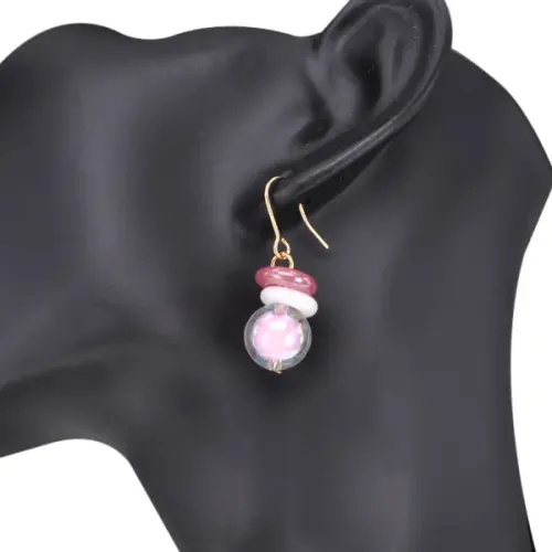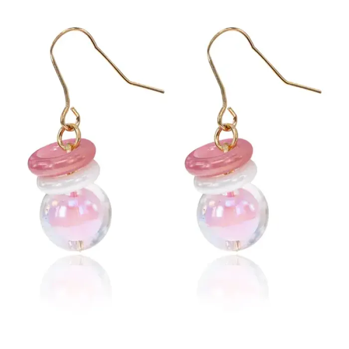 Серьги в виде шара с колечками из бижутерного сплава и пластика. Цвет розовый.