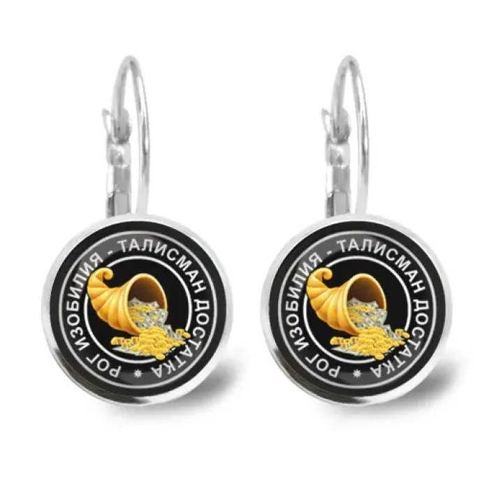 Серьги-сувенир из бижутерного сплава с изображением под выпуклой стеклянной линзой.