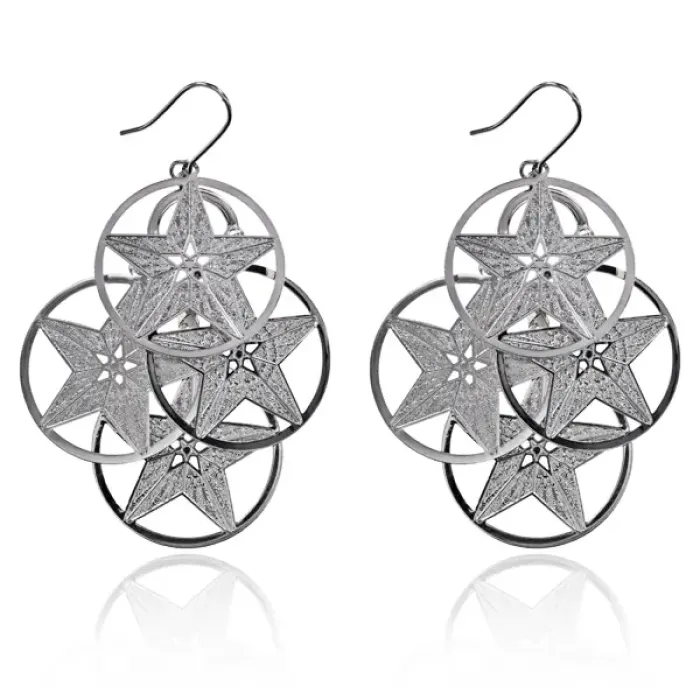Серьги в виде звёзд из бижутерного сплава с покрытием под серебро и замком типа петля.