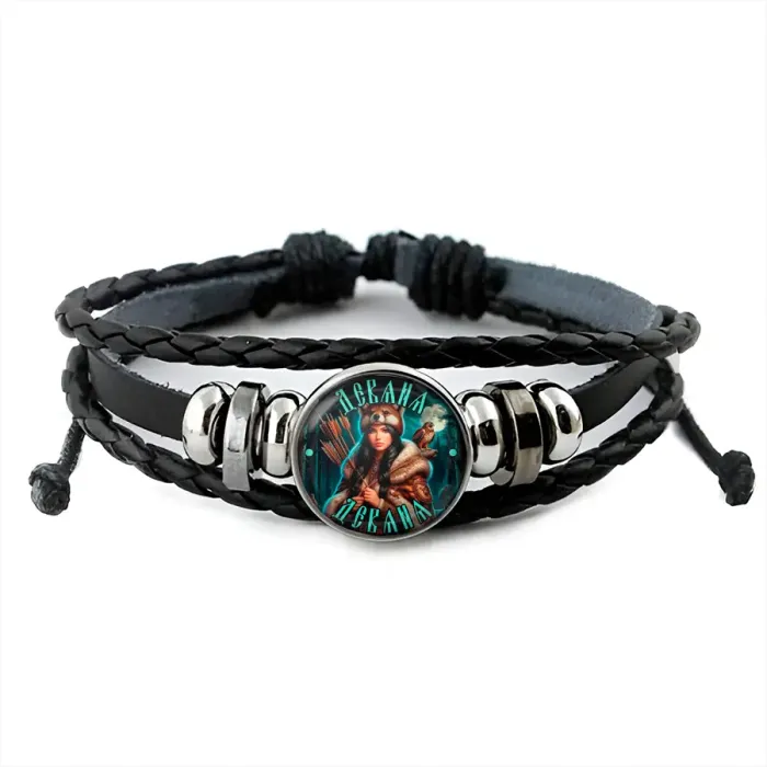 Брелок-амулет с изображением славянской богини Деваны. Изображение диаметром 20 мм расположено под выпуклой стеклянной линзой.