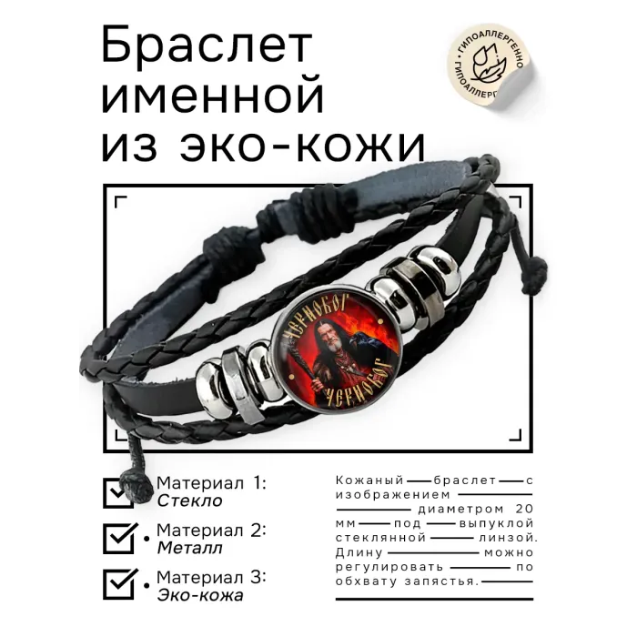 Брелок-амулет с изображением Чернобога — символа славянской мифологии, олицетворяющего силы тьмы и разрушения. Этот уникальный аксессуар выполнен из синтетической кожи, металла и стекла, что обеспечивает его долговечность и стильный внешний вид. Диаметр изображения составляет 20 мм, а регулируемый размер позволяет удобно носить его на запястье. Упакован в прозрачный пакет, что делает его отличным вариантом для подарка или личного использования. Чернобог традиционно ассоциируется с очищением через разрушение старого и созданием пространства для нового.