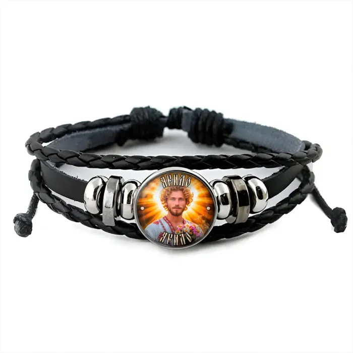 Брелок-амулет с изображением славянского бога Ярило, символизирующего весеннее солнце и плодородие. Изготовлен из синтетической кожи, металла и стекла, диаметр изображения составляет 20 мм под выпуклой линзой. Упаковка выполнена в прозрачном пакете, а регулируемый размер позволяет удобно носить аксессуар на запястье. Этот амулет традиционно используется для привлечения жизненной силы и удачи в делах. Ярило почитается как защитник земледельцев и символ здоровья для будущих матерей.