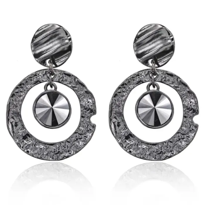 Серьги-пусеты из бижутерного сплава с вставкой из кристалла черного цвета.