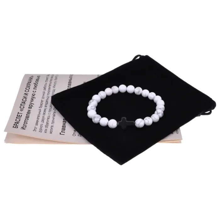 Христианский браслет Крест с нат.камнем Кахолонг 8мм BSH-12-07