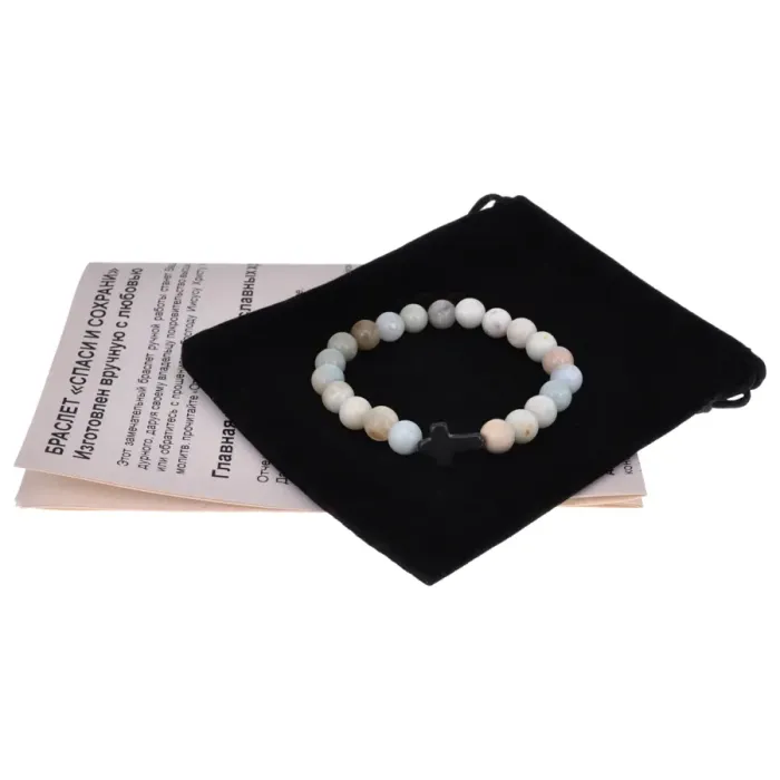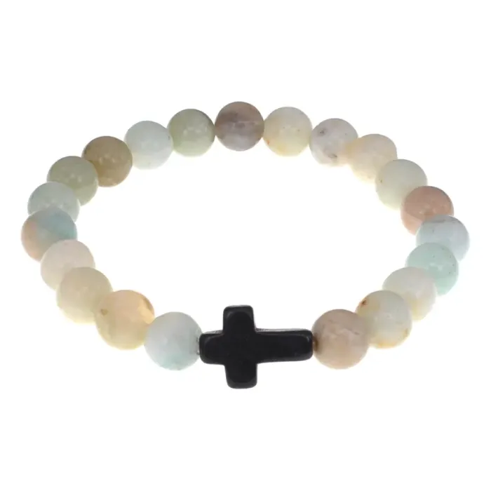 Христианский браслет Крест с нат.камнем Амазонит 8мм BSH-12-26