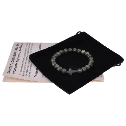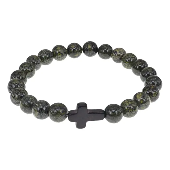 Христианский браслет Крест с нат.камнем Змеевик 8мм BSH-12-29
