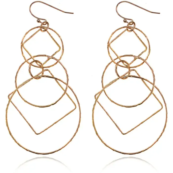Серьги из бижутерного сплава золотого цвета с геометрическим дизайном.