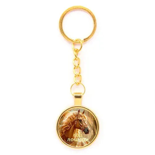 Круглый брелок, цвет золото, с цепочкой, Год Лошади C0902020